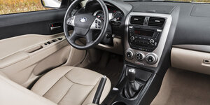 Пока из всех типов комплектации Faw Besturn B30 для российских покупателей доступна лишь модификация Модерн. Интерьер салона выполнен лаконично, модно и в соответствии с современными тенденциями. Несмотря на использование жесткого пластика материал обладает высоким качеством. Также выигрышно смотрится светлая ткань на сидениях водителя и пассажиров. Отдельно необходимо отметить и такие особенности, как: